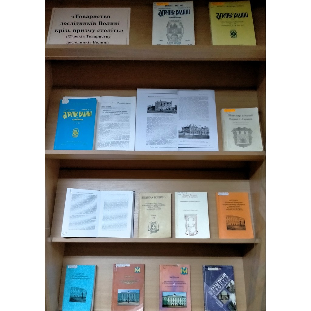 13 листопада 2025 року в холі ЖОУНБ і. О. Ольжича відділом краєзнавства представлено книжкову виставку «Товариство дослідників Волині крізь призму століть» (125 років Товариству дослідників Волині).