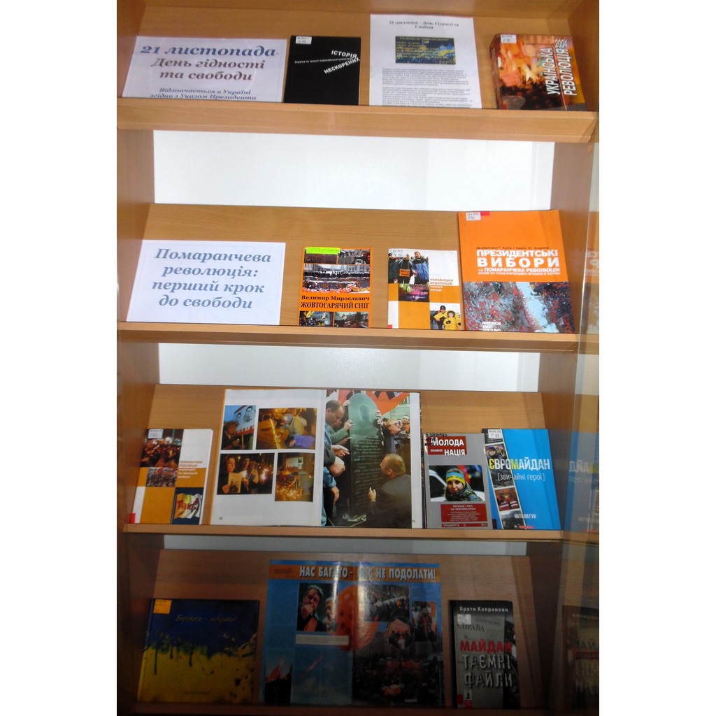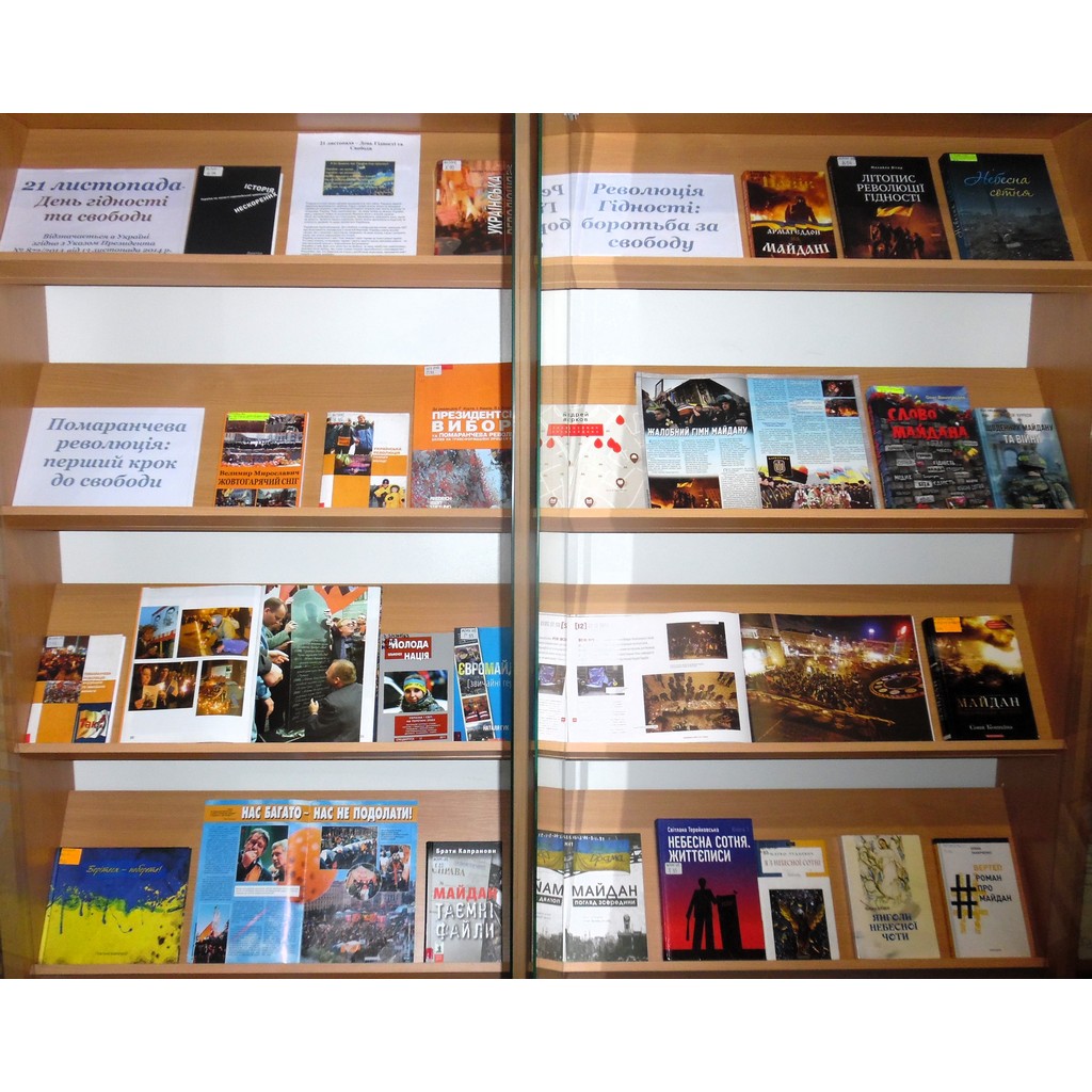 Щороку День Гідності та Свободи українці відзначають 21 листопада – в річницю початку Євромайдану. З нагоди Дня Гідності та Свободи розгорнуто тематичну книжкову виставку.