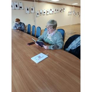Завідувачка відділу україніки Галина Давидовська зачитувала вірші зі збірок «Подорож навколо Сонця» та «Слово». До читання поезій та їх обговорень активно долучилися також інші учасники заходу. Літературна гостина пройшла цікаво, в теплій, дружній атмосфері.