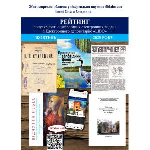 Пропонуємо Вашій увазі ТОП-5 найбільш популярних видань у жовтні 2025 року за рейтингом перегляду з електронного ресурсу оцифрованих документів ОУНБ ім. О. Ольжича Житомирської обласної ради.