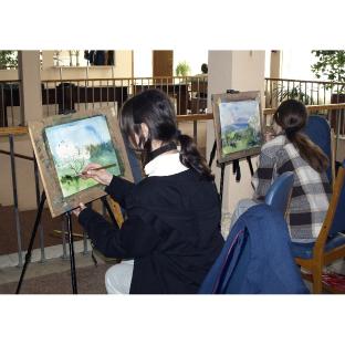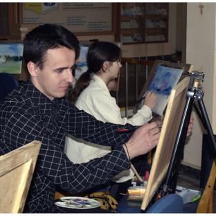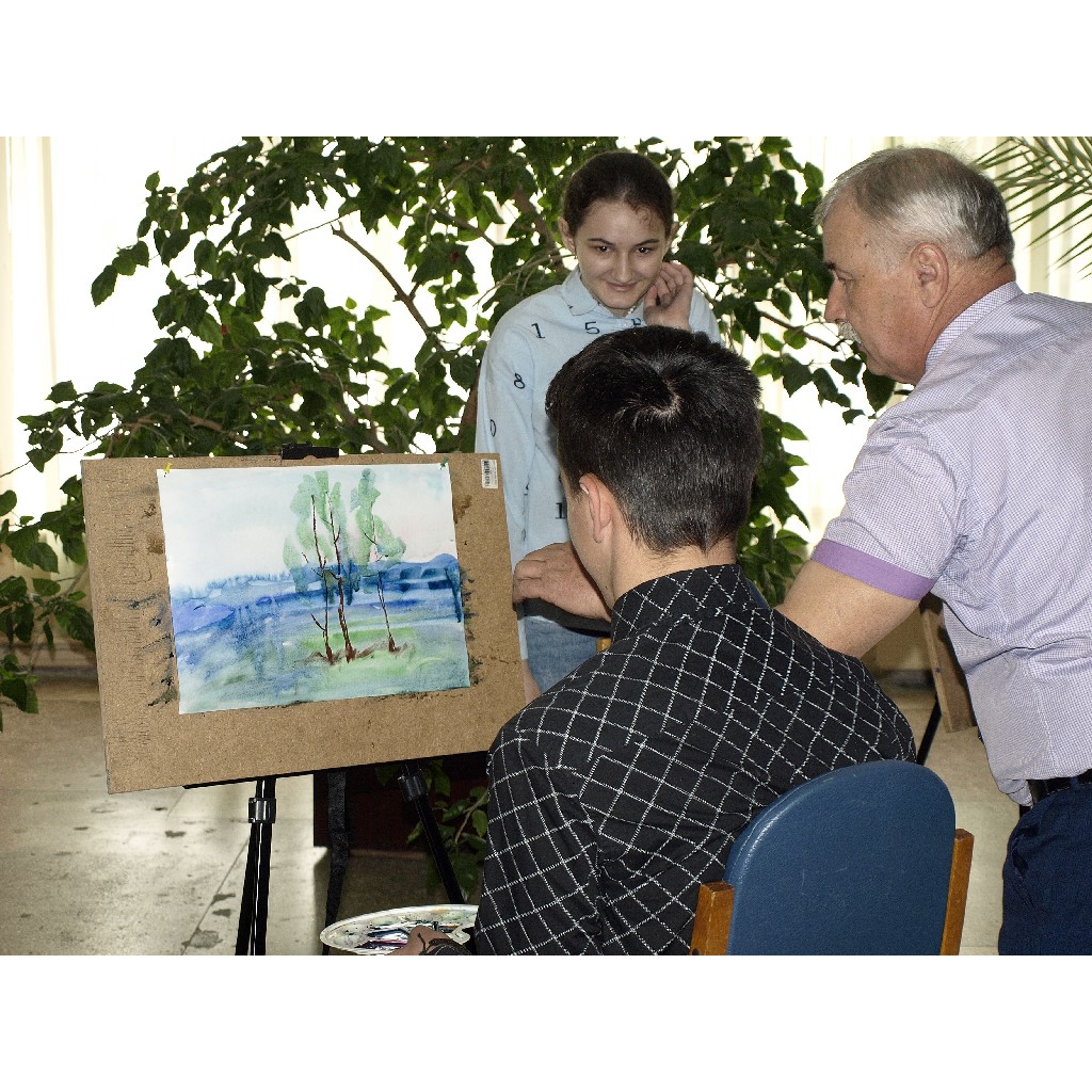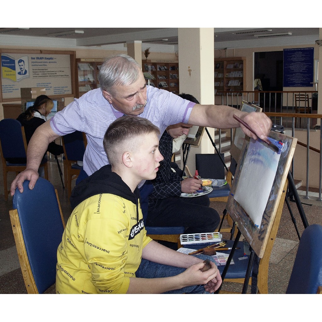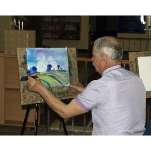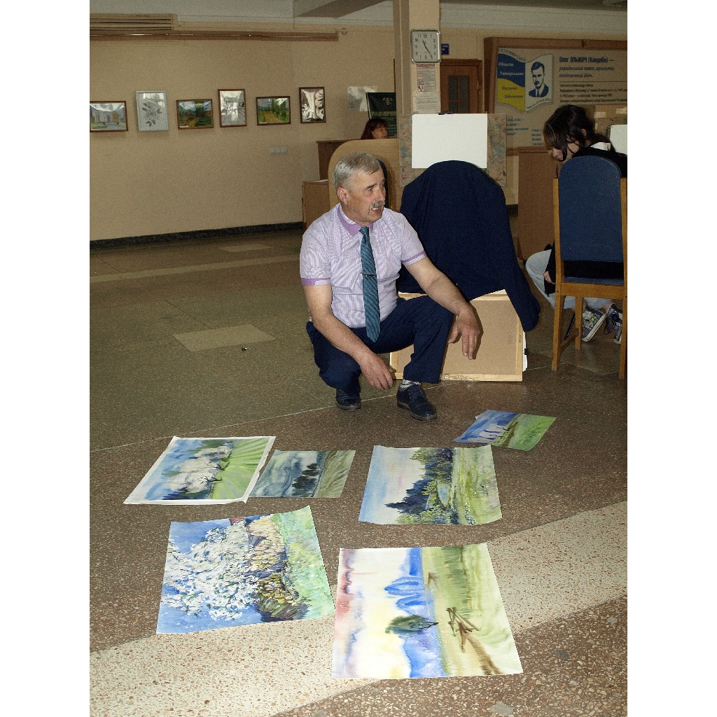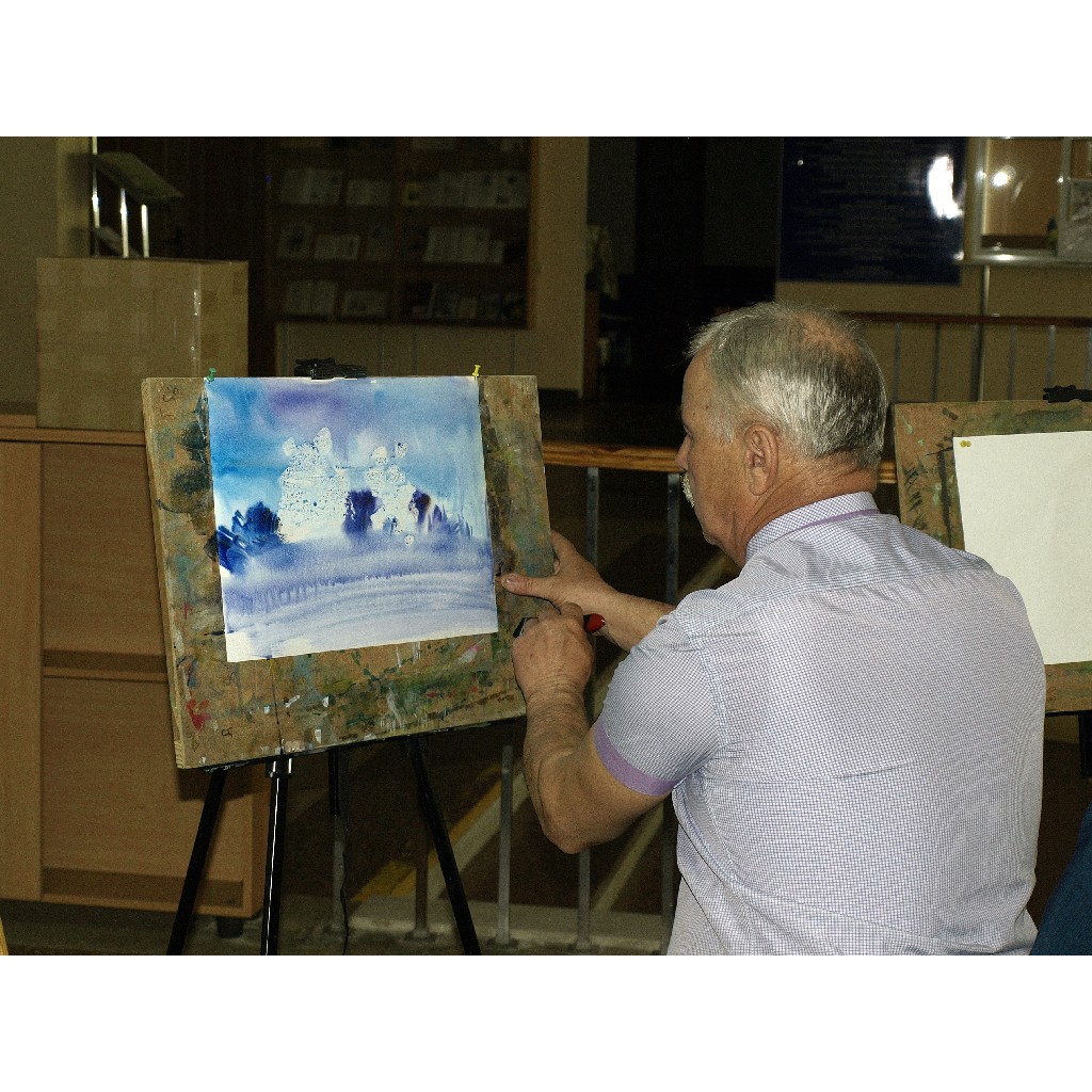 Після відкриття виставки художник-педагог Леонід Фесенко дав майстер-клас із малювання пейзажу аквареллю.