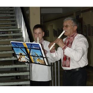 Захід пройшов під веселий сопілковий супровід викладача музичного відділення Пулинської мистецької школи Івана Григоровича Іщенка та його учня.
