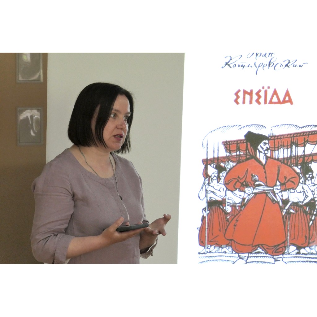 Модератор заходу, головний бібліотекар відділу краєзнавства Володимир Білобровець, познайомив присутніх із цікавими фактами з біографії Івана Котляревського, детально зупинився на історії написання і видання поеми «Енеїда».