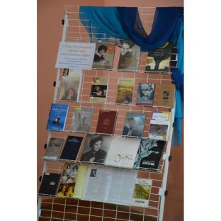До уваги присутніх була представлена книжкова виставка, яка знайомила з найвідомішими поетичними та прозовими творами авторки, зокрема зі знаковими збірками «Над берегами вічної ріки», «Неповторність», «Сад нетанучих скульптур», історичним романом у віршах «Маруся Чурай», а також її прозовою книгою «Записки українського самашедшого». Особливу увагу викликали видання з літературознавчими розвідками та статтями про творчість Ліни Костенко.