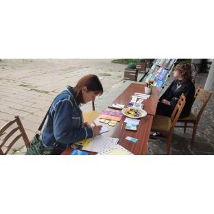 на якому учасники мали змогу власноруч створити яскраві патріотичні листівки у форматі антистрес-арту, які згодом можна використовувати як оригінальні закладки до книги, або подарунок близькій людині.