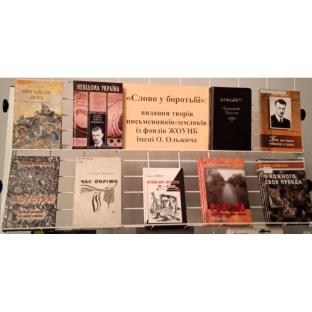 20 вересня 2025 року в рамках заходів ІІІ книжкового форуму «Відсіч. Без бар’єрів» відділом краєзнавства ЖОУНБ ім. О. Ольжича у приміщенні Житомирського обласного академічного театру ляльок було представлено виставку видань «Слово у боротьбі» (підготував – головний бібліотекар відділу краєзнавства В. Білобровець).
