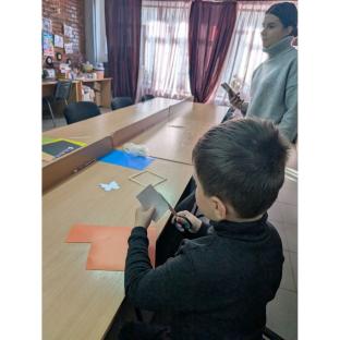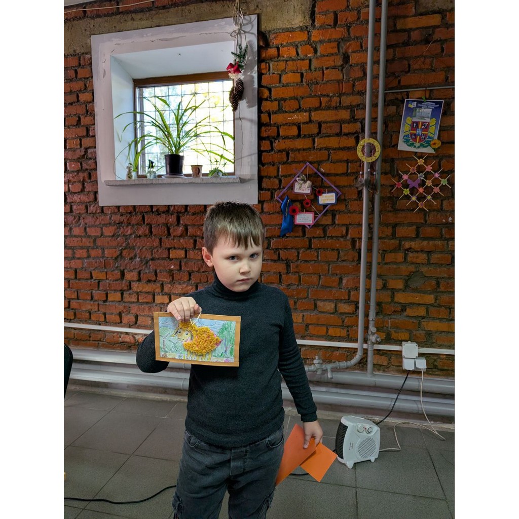 Діти виготовляли чарівного метелика в рамочці. Для цього використовували кольоровий картон, мотузку, клей та рамочку. Кожен обрав кольори відповідно до свого настрою, а батьки допомагали із вирізанням та оформленням. Згодом учасники розфарбовували овечку та робили їй хутро з макаронів. Макарони приклеювалися на контур тіла овечки.