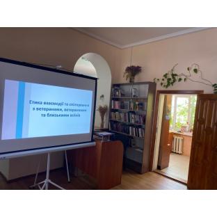 У центрі уваги — тренінг «Етика взаємодії та спілкування з ветеранами та ветеранками», який провели завідуюча науково-методичного відділу Оксана Костюченко та головний методист Галина Козаченко.
