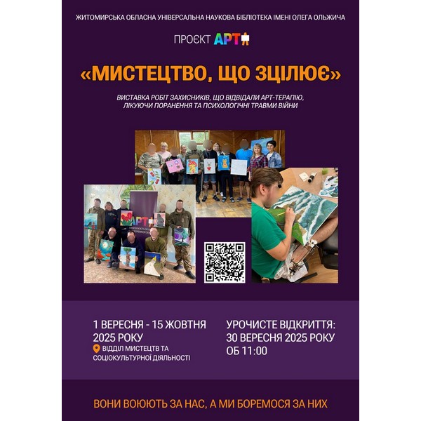 З 1 вересня по 15 жовтня 2025 року, у відділі мистецтв та соціокультурної діяльності, експонується виставка робіт захисників, що відвідали арт-терапію, лікуючи поранення та психологічні травми війни «Мистецтво, що зцілює».