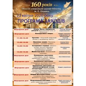 • Житомирська обласна універсальна наукова бібліотека імені Олега Ольжича – 23 квітня 2026 року відзначає 160-річчя з дня заснування.