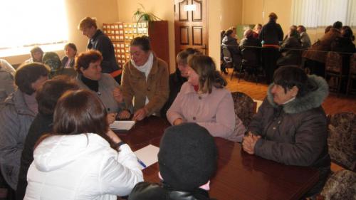 8 жовтня головний бібліотекар НМВ, координатор РТЦ Г. Козаченко та координатор сектору Інклюзивний читальний зал, тренерка РТЦ Ю. Покотило провели виїзний тренінг «Орієнтація на клієнта» для бібліотечних працівників Коростенського району. Це перший досвід проведення подібного заходу суто для працівників сільських бібліотек. Незважаючи на певні ризики та побоювання, які висловлювали тренерки, тренінг пройшов дуже вдало, при великій зацікавленості та активності його учасників. Фахівці обласної бібліотеки зрозуміли, що виключати цю тематику із тренерської діяльності ще зарано – нестандартний підхід як до звичної бібліотечної діяльності, так і до методики проведення, незмінно викликає позитивний настрій, проактивний підхід та виявляє приховані здібності учасників.