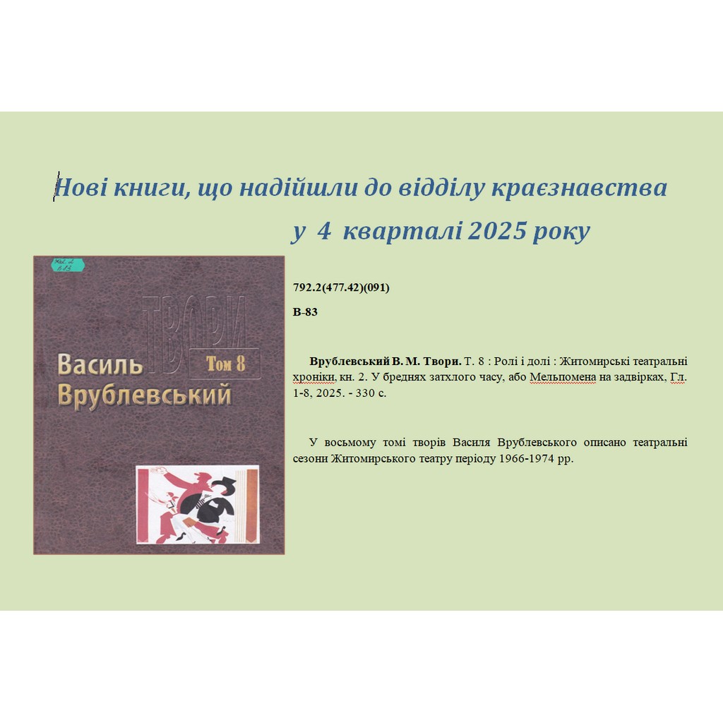 Нові книги, що надійшли до відділу краєзнавства