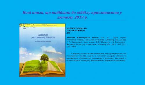 Нові книги, що надійшли до відділу краєзнавства у лютому 2019 р.