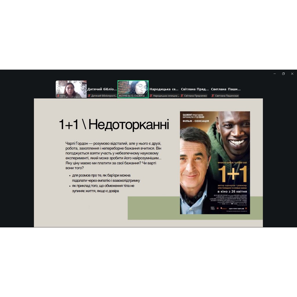 Учасники отримали добірку рекомендацій для проведення книжкових оглядів, тематичних заходів, кінопоказів і дискусій у бібліотечному середовищі. Вебінар мав практичне спрямування та був орієнтований на реальні можливості бібліотек в умовах обмежених ресурсів.